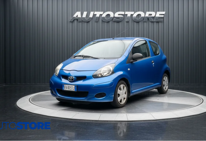 Toyota Aygo 3p 1.0 Sol Connect 2011 in colore blu, una citycar compatta e maneggevole pensata per l’uso urbano quotidiano, con abitacolo essenziale ma accogliente e comandi intuitivi. Ideale per chi cerca praticità negli spostamenti di tutti i giorni, mantenendo un’immagine giovane e discreta.